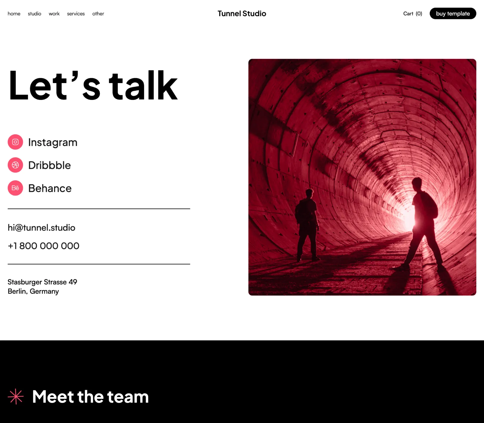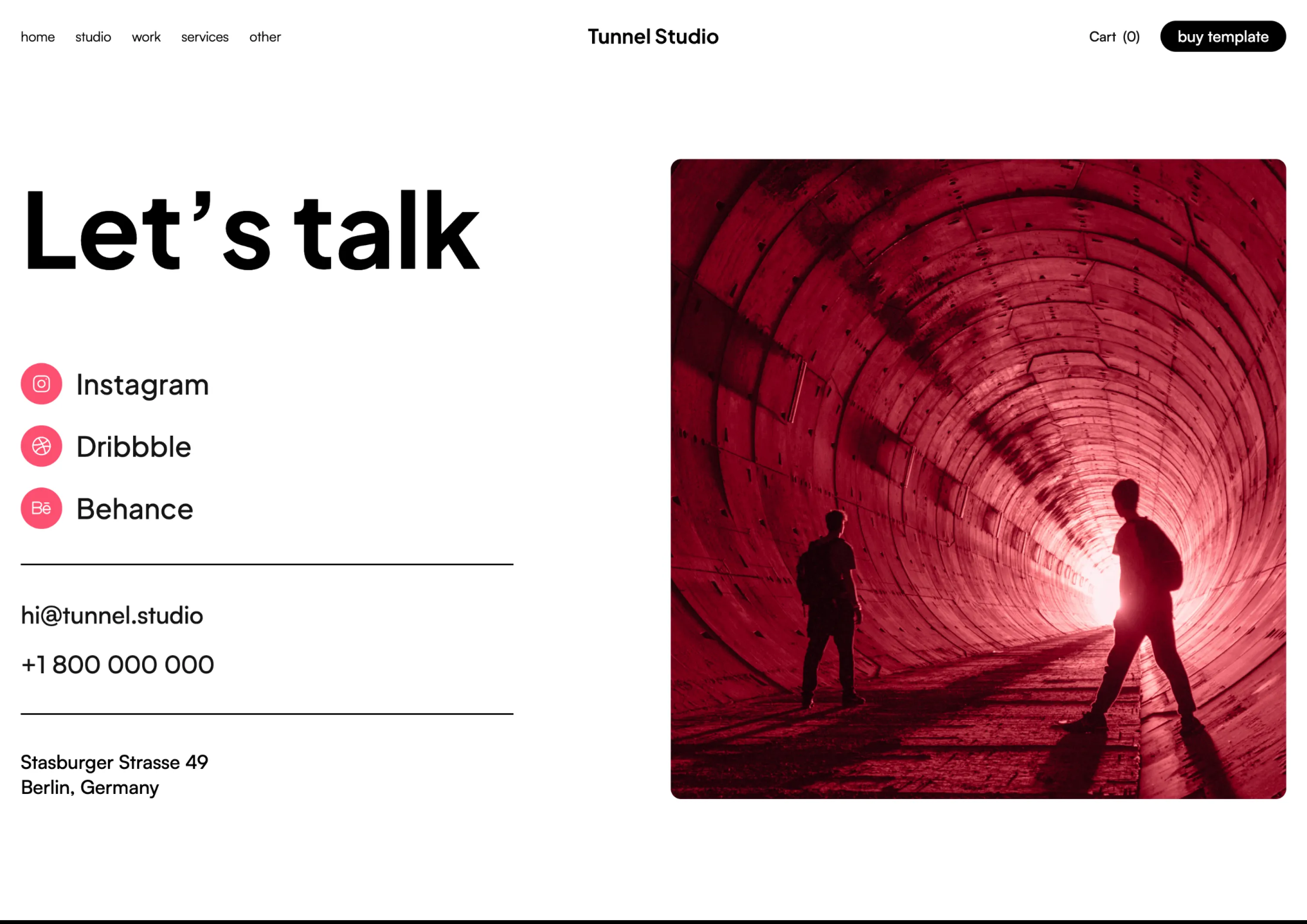 Tunnel Studio Webflow Template comes with eCommerce set up, so you can start selling your services straight away.