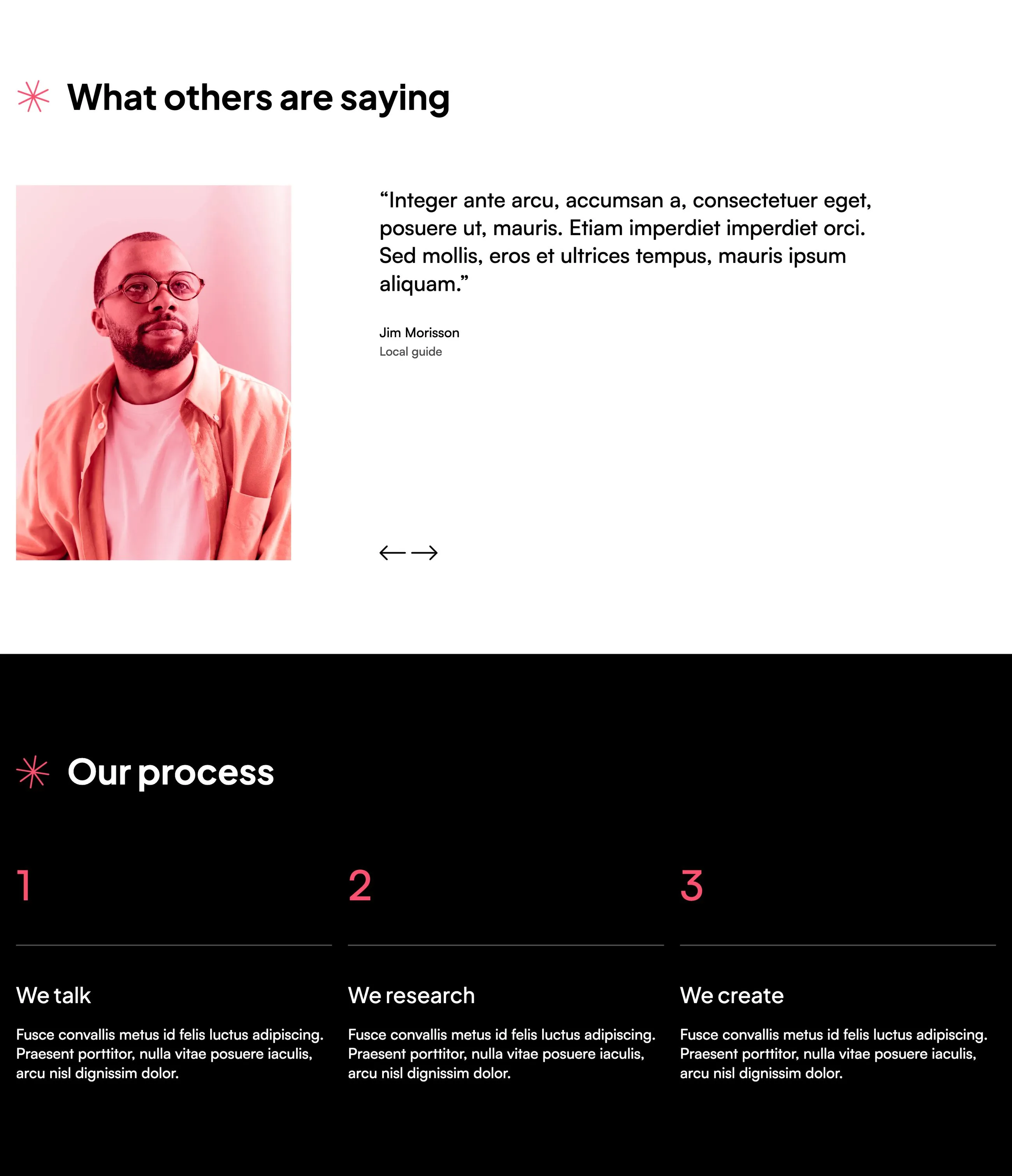 Our template is modular, meaning you can combine different sections as well as single elements, like buttons, images, etc. with each other without losing on consistency of the design. Long story short, different elements will always look good together.